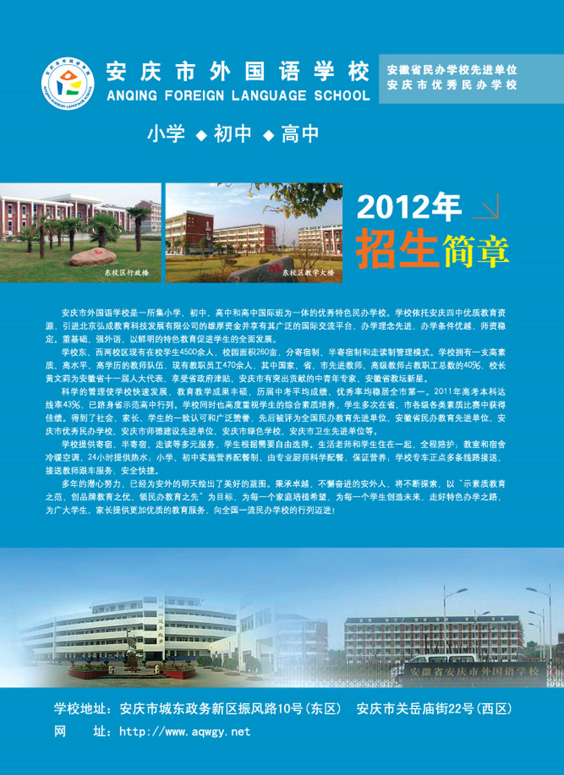 安慶市外國(guó)語(yǔ)學(xué)校2012年招生簡(jiǎn)章