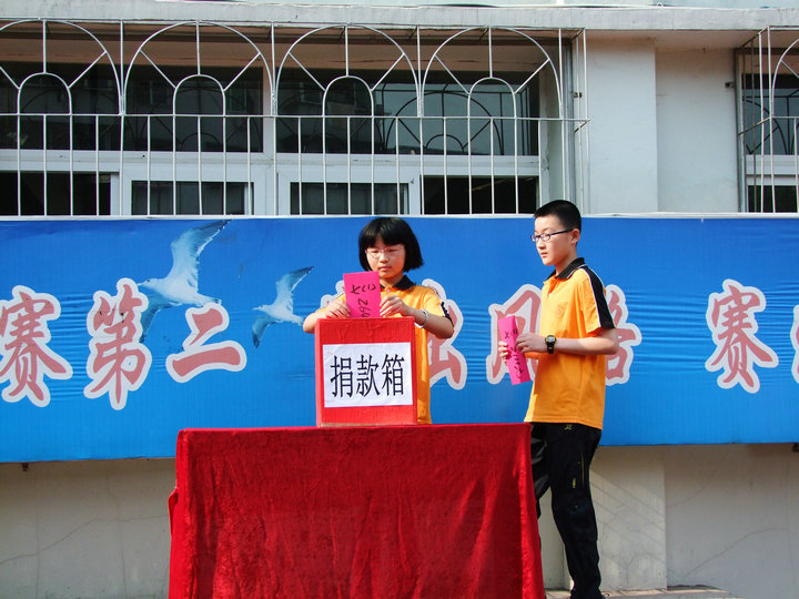 這是一個即普通又特殊的日子,2012年5月28日晨會,在升旗儀式、初二(1)班董澤駿同學《心懷感恩,與愛同行》演講后,在輕緩而又抒懷的樂聲下,為齊濤同學捐款儀式開始,那一幕幕是多么的感人,那一串串的數(shù)字從一元到五元、從十元到百元還有更多,無不滲透著愛的氣息:七十多歲的校工黃老捐出了二十元、初二(6)班王超逸、吳嵐等八位同學除了在班級捐款外還利用周末休息時間自發(fā)走上街頭向路人募得一千多元……