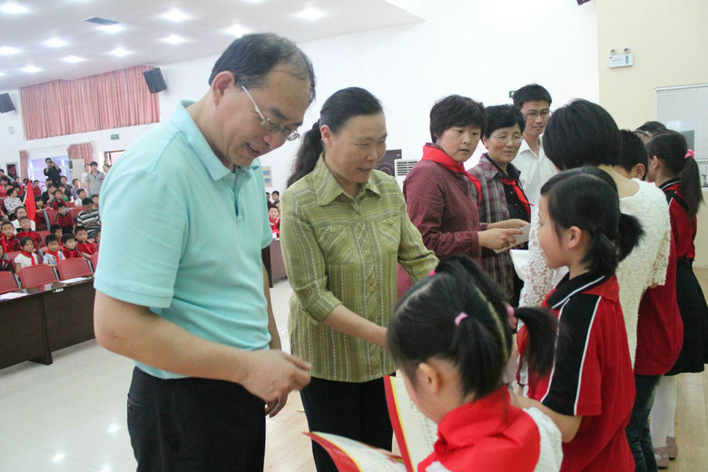 下午2點(diǎn)半慶祝大會(huì)開始。首先是新隊(duì)員入隊(duì)儀式,一年級(jí)小朋友光榮地戴上了紅領(lǐng)巾,大隊(duì)輔導(dǎo)員帶領(lǐng)孩子們宣誓,張校長在祝賀孩子們節(jié)日快樂的同時(shí)給予了殷切的希望。接下來是中英文合唱比賽上,同學(xué)們齊心協(xié)力為班級(jí)而戰(zhàn),為集體而戰(zhàn),節(jié)目各有特色,場上不時(shí)響起陣陣掌聲。慶祝會(huì)上還表彰了“四好少年”、“三好學(xué)生”、“優(yōu)秀學(xué)生干部”、“學(xué)科知識(shí)競賽”優(yōu)勝者。歌聲在報(bào)告廳回蕩,幸福洋溢在孩子們的臉上……