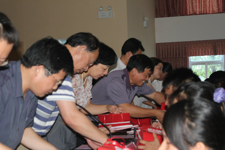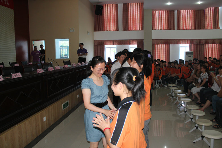 最后,盧文靜、黃嶼軒兩位同學(xué)在年級長楊勇老師帶領(lǐng)下代表初三全體同學(xué)向黃文莉校長和程金柳校長贈(zèng)送紀(jì)念品。學(xué)校領(lǐng)導(dǎo)向畢業(yè)生贈(zèng)送畢業(yè)賀卡和發(fā)放邀請函。畢業(yè)典禮在背景音樂《相信自己》中,全體同學(xué)一一向?qū)W校領(lǐng)導(dǎo)、老師握手擁抱話別。