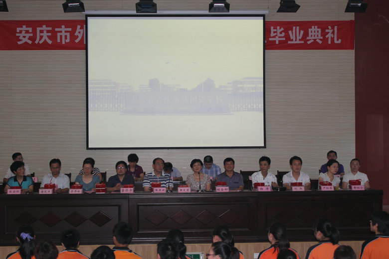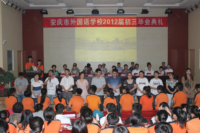 2012年6月12日下午2:28分,學(xué)校全體行政領(lǐng)導(dǎo)、學(xué)生家長代表、全體初三教師、2012屆全體初三畢業(yè)生,齊聚學(xué)校報(bào)告廳。安慶市外國語學(xué)校東校區(qū)2012屆初三畢業(yè)典禮隆重舉行。