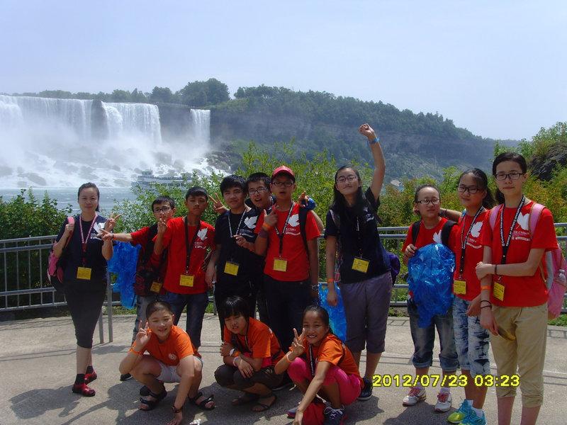 我們一行人于2012年7月18日從北京乘坐飛機(jī)到香港,然后轉(zhuǎn)機(jī)到多倫多,光坐飛機(jī)就得坐16個(gè)小時(shí)還多。 大多數(shù)的孩子是第一次坐飛機(jī),所以那種期待的感覺可想而知,由于種種原因,飛機(jī)晚起飛近二十分鐘,期間就有孩子不停地問,老師,飛機(jī)怎么還不開呀?終于等到起飛的時(shí)間,有人興奮的大叫,動(dòng)了動(dòng)了,飛了飛了!那個(gè)高興勁就別提了。我們的座位不在一起,我和幾個(gè)運(yùn)氣好的學(xué)生正好坐在窗邊,可以看到窗外的白云和藍(lán)天。天空是一片純凈的碧藍(lán),偶爾掠過如薄紗般的白云。腳下的山川大地隱約可見。長(zhǎng)城如一條蜿蜒的長(zhǎng)龍守衛(wèi)著祖國的河山,悠遠(yuǎn)壯闊。飛機(jī)上空乘服務(wù)人員的甜美嗓音和周到的服務(wù),讓人掃去了旅途的疲乏,我們于北京時(shí)間7月19號(hào)早上8點(diǎn)20分到達(dá)多倫多機(jī)場(chǎng)。但在加拿大是當(dāng)?shù)貢r(shí)間 7月18號(hào)晚上8點(diǎn)20分,雖然是晚上,可天色依然明亮,讓剛下飛機(jī)的我們有些迷糊,分不清這到底是早上還是晚上。加拿大的緯度比較高,再加上現(xiàn)在是夏天,所以晝長(zhǎng)夜短,晚上要到9點(diǎn)以后才會(huì)天色漸黑。等過了海關(guān)檢查,拿了托運(yùn)的行李,就看到哥倫比亞國際學(xué)院green team的成員已在機(jī)場(chǎng)等候了。等我們到了自己的住處已經(jīng)是晚上的十點(diǎn)多種,宿舍很簡(jiǎn)單,是那種學(xué)生公寓,但還干凈整潔,大家都太累了,洗洗后都睡了。