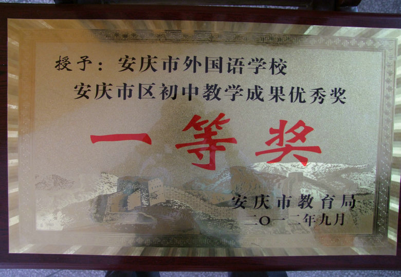 熱烈祝賀安慶市外國語學(xué)校獲得安慶市教學(xué)成果評比最高獎
