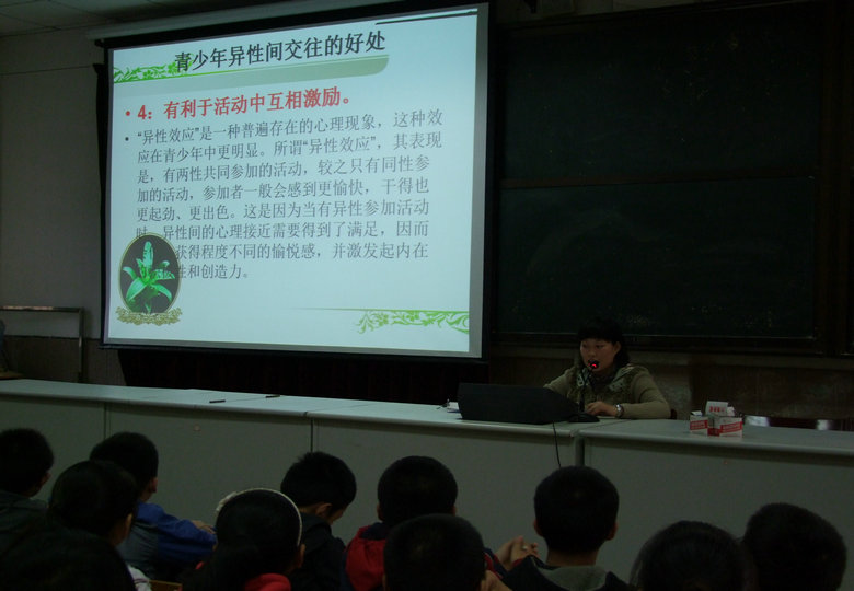 本次講座以《相遇在花季》為主題,由徐慧老師主講,針對中學(xué)生異性交往予以指導(dǎo)。講座主要從青春期的的心理特點、異性交往的注意事項等方面進行了詳細(xì)的講解,使同學(xué)們對青春期心理特征有了深入的了解,并學(xué)會處理異性交往中的常見問題,對學(xué)生青春期常見的心理問題起到積極的教育和引導(dǎo)作用。
