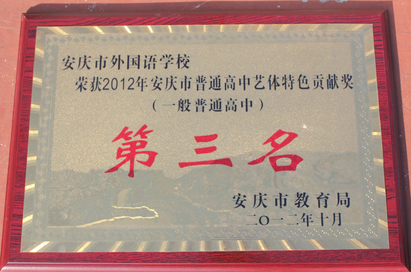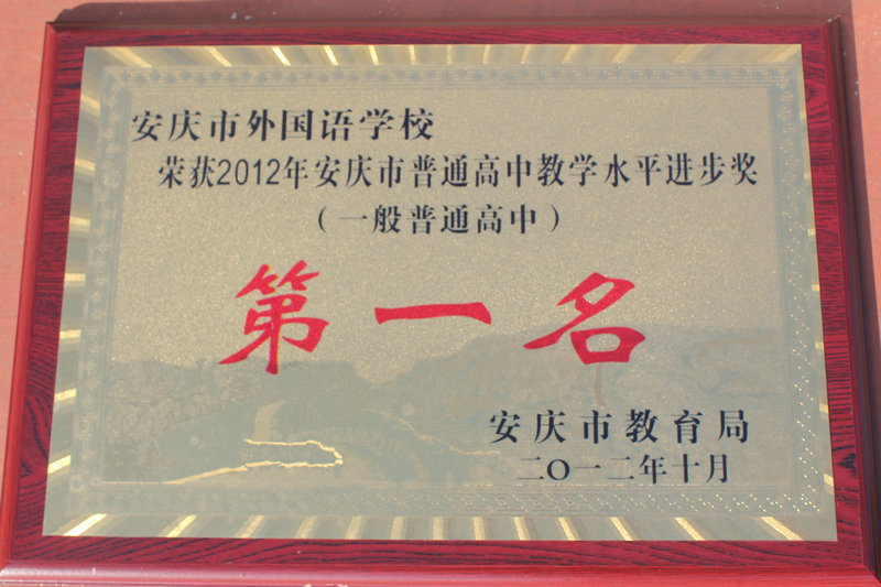 “安慶市普通高中教學(xué)水平進(jìn)步獎(jiǎng)”是對(duì)學(xué)生從中考入學(xué)到高考,三年成績(jī)提升的肯定。外國(guó)語學(xué)校“榮獲教學(xué)水平進(jìn)步獎(jiǎng)第一名”充分體現(xiàn)了學(xué)校在高中學(xué)生培養(yǎng)方面實(shí)現(xiàn)了“低進(jìn)高出、高進(jìn)優(yōu)出”的跨越。榮獲“2012年安慶市普通高中藝體特色貢獻(xiàn)獎(jiǎng)”是市教育局對(duì)我校在藝術(shù)、體育特長(zhǎng)生培養(yǎng)方面的突出貢獻(xiàn)的表彰。