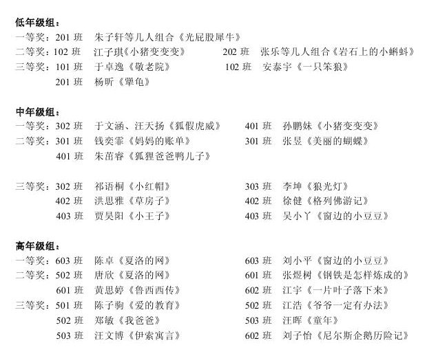 同時(shí),本次比賽得到眾多家長(zhǎng)的關(guān)心和支持,更有部分家長(zhǎng)親臨現(xiàn)場(chǎng)觀看表演,為孩子們加油。過(guò)激烈的競(jìng)賽,產(chǎn)生出的獲獎(jiǎng)情況如下: