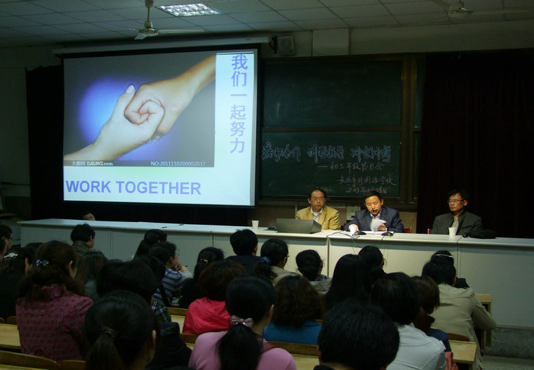 為進一步加強學(xué)校與家長的溝通,增進家長對后階段畢業(yè)班教育教學(xué)工作的了解和認(rèn)識,2013年4月25日晚上7點,安慶市外國語學(xué)校(西區(qū))組織召開了初三年級家長會。本次家長會的主題是“密切合作,科學(xué)指導(dǎo),沖刺中考”。會議由初三年級長施慶峰老師主持,常務(wù)副校長張燕斌、教學(xué)部主任凌謙參加了本次會議。