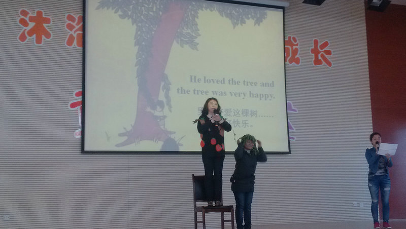 本次活動(dòng)是小學(xué)部第三屆讀書月活動(dòng)的重要組成部分,全體教師積極參與,講述的內(nèi)容豐富且形式各不相同,老師們以飽滿的狀態(tài)、生動(dòng)的語言,真摯的情感精彩的表演講述了一個(gè)個(gè)動(dòng)人的故事。有發(fā)人深思的《城里的巨人》,有充滿哲理的《小王子》,有感人至深的《我的爸爸叫焦尼》等13個(gè)節(jié)目,其中英語組表演的《匹諾曹》因外教Lucia的參演倍加引人矚目;而數(shù)學(xué)組壓軸出場(chǎng)的《三打白骨精》更是轟動(dòng)全場(chǎng),引起全體學(xué)生的共鳴,讓整個(gè)活動(dòng)現(xiàn)場(chǎng)氣氛空前熱烈。