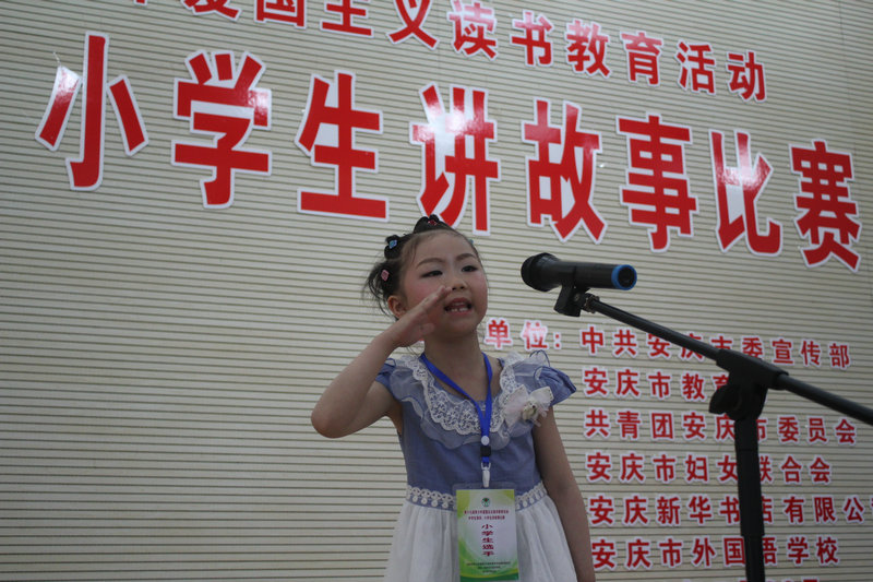 來自主辦方市委宣傳部、市教育局、團(tuán)市委、市婦聯(lián)和安慶新華書店有限公司的評委們?yōu)檫x手現(xiàn)場打分,產(chǎn)生中學(xué)組、小學(xué)組各兩名選手(男女各一名)參加7月份的省級比賽。