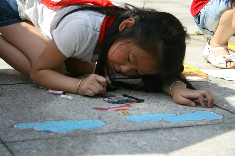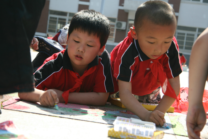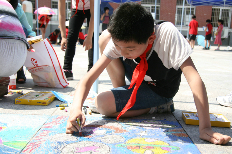 小學(xué)部舉行慶六一“百人百米地畫大賽”