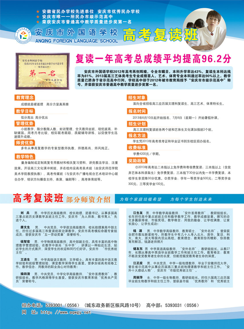 辦班宗旨:依照2013年安徽考綱,講授高中教材中的基礎理論和高頻知識點。通過系統(tǒng)的專題教學,以達到對高考綜合運用能力的培養(yǎng),為順利通過2014年的高考奠定堅實基礎。