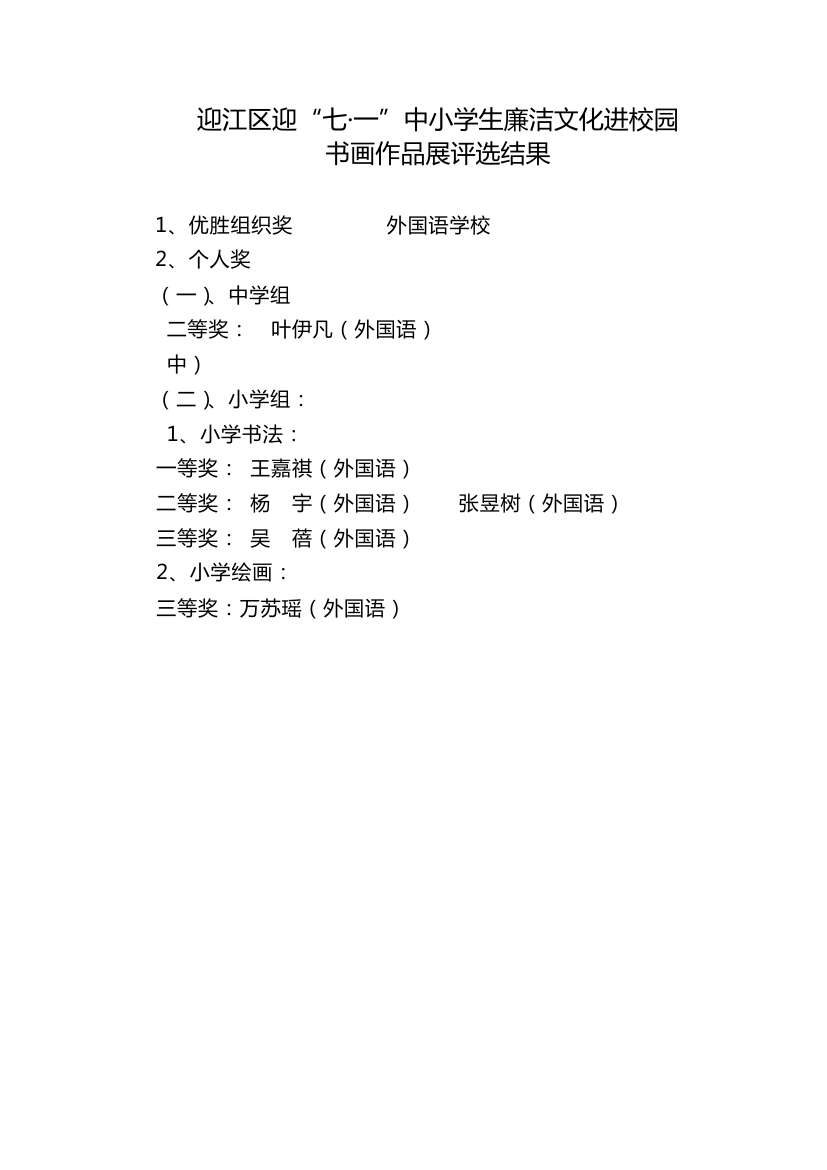 我校榮獲迎江區(qū)迎“七?一”中小學(xué)生廉潔文化進(jìn)校園書畫作品展優(yōu)勝組織獎(jiǎng)