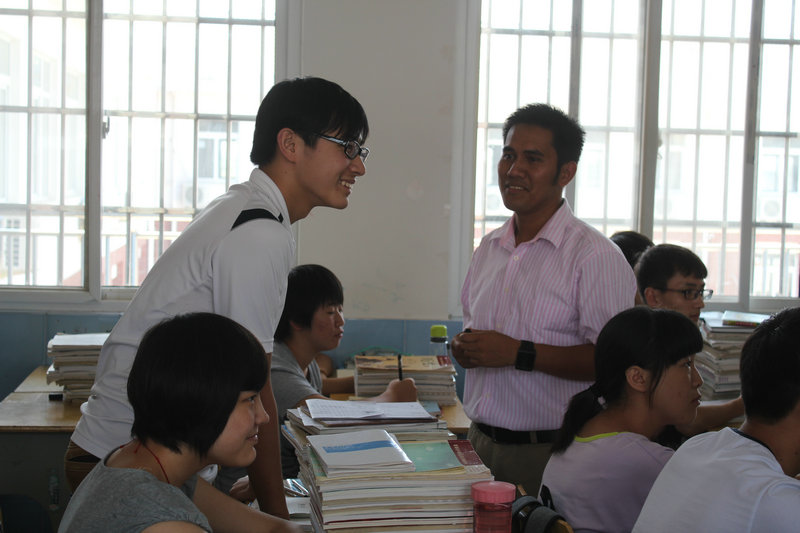 隨后,在徐主任的陪同下,湯校長一行觀摩了外籍教師Khim的一節(jié)英語口語課。Khim