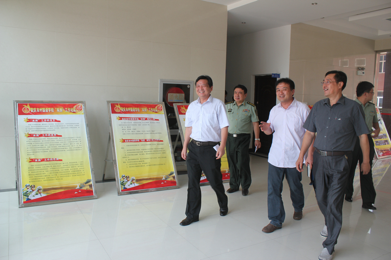 8月13日上午,安徽省民政廳葉如強(qiáng)副廳長、安徽省雙擁辦宋仁貴副主任、安慶市委陶方啟副書記、安慶軍分區(qū)政治部張兆都主任、安慶市教育局張澤水書記和安慶市民政局陸天民局長等一行來我校檢查雙擁工作,檢查組一行參觀了校園,觀看了我校雙擁工作紀(jì)實(shí)展板,查閱了雙擁工作資料,并聽取了黃文莉校長對我校雙擁工作所作的詳細(xì)匯報(bào),安徽省民政廳葉如強(qiáng)副廳長對我校雙擁工作的開展情況和取得的成績提出了肯定和贊揚(yáng),并鼓勵(lì)我校繼續(xù)努力,將雙擁工作做得更好。