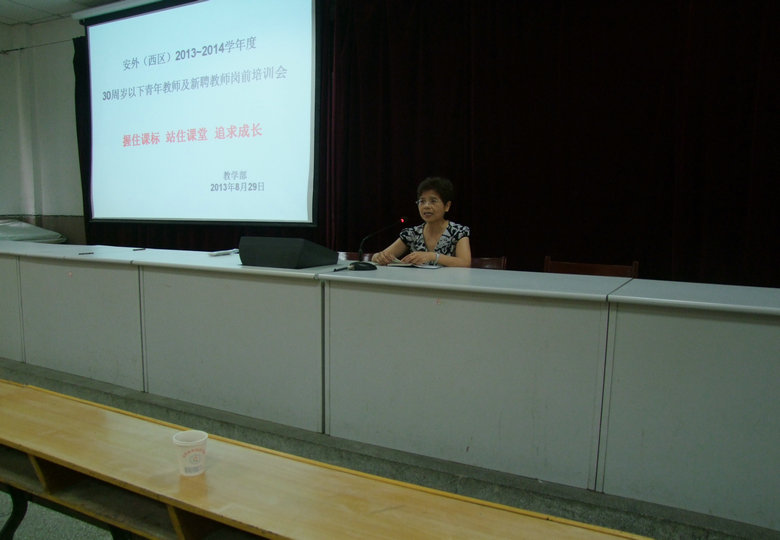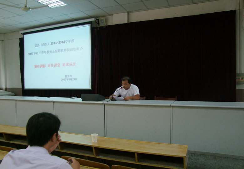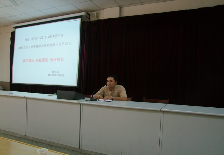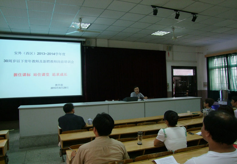 為幫助教師盡快適應(yīng)崗位工作,促進(jìn)教師專業(yè)成長,2013年8月29日上午,安外(西區(qū))教學(xué)部在校報告廳召開了青年教師及新聘教師崗前培訓(xùn)會。會議由教學(xué)部蘆丹主任主持,孫英校長、陳一平副校長出席了此次會議。