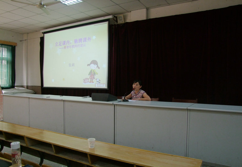 隨后,語文教研組長周興斌老師、數(shù)學(xué)教研組長陳培峰老師和英語教研組長張莉老師分別做了《語文教學(xué)中的幾個關(guān)鍵詞》、《怎樣給課堂加些調(diào)味品》和《立足課內(nèi),馳騁課外》的專題講座。三位組長結(jié)合自己多年的從教經(jīng)歷,深入淺出地介紹了自己在教學(xué)和教研工作中的心得體會,與教師們分享了寶貴的成長經(jīng)驗。