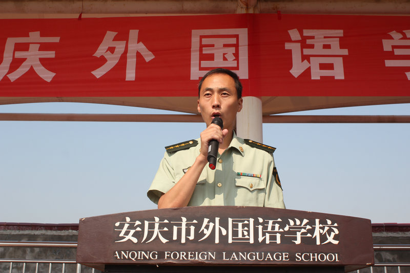 副校長(zhǎng)程金柳作軍訓(xùn)動(dòng)員重要講話。程校長(zhǎng)首先對(duì)新同學(xué)的到來表示熱烈的歡迎,向承擔(dān)此次新生軍訓(xùn)任務(wù)的安慶武警支隊(duì)的教官們表示誠(chéng)摯的謝意!他指出,軍訓(xùn)是同學(xué)們進(jìn)入高中的第一課,是鍛煉思想、磨練意志的一課,希望同學(xué)們學(xué)習(xí)中國(guó)人民解放軍的好精神、好作風(fēng)、好傳統(tǒng)。發(fā)揚(yáng)不怕苦的精神,嚴(yán)格訓(xùn)練、嚴(yán)格要求,實(shí)現(xiàn)思想作風(fēng)與軍事技能的雙豐收!