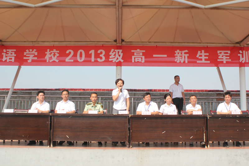 儀式最后,校長(zhǎng)黃文莉莊嚴(yán)宣布安慶外國(guó)語(yǔ)學(xué)校2013級(jí)高一新生軍訓(xùn)正式開營(yíng)。本期軍訓(xùn)隨即開始。