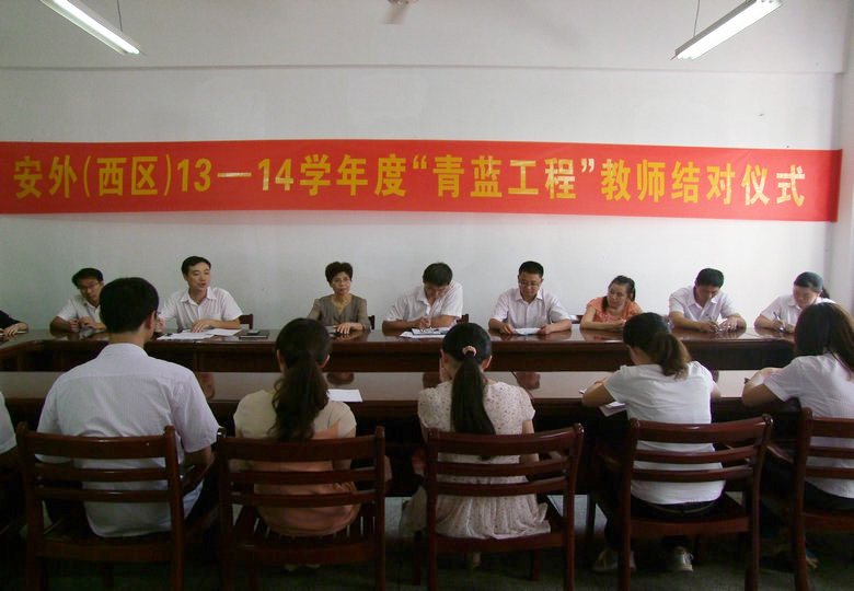 2013年9月9日下午,安外(西區(qū))13-14學(xué)年度“青藍(lán)工程”教師結(jié)對儀式在校二樓會議室舉行。會議由教學(xué)部蘆丹主任主持,孫英校長、陳一平副校長以及王昌良副主任出席了會議。