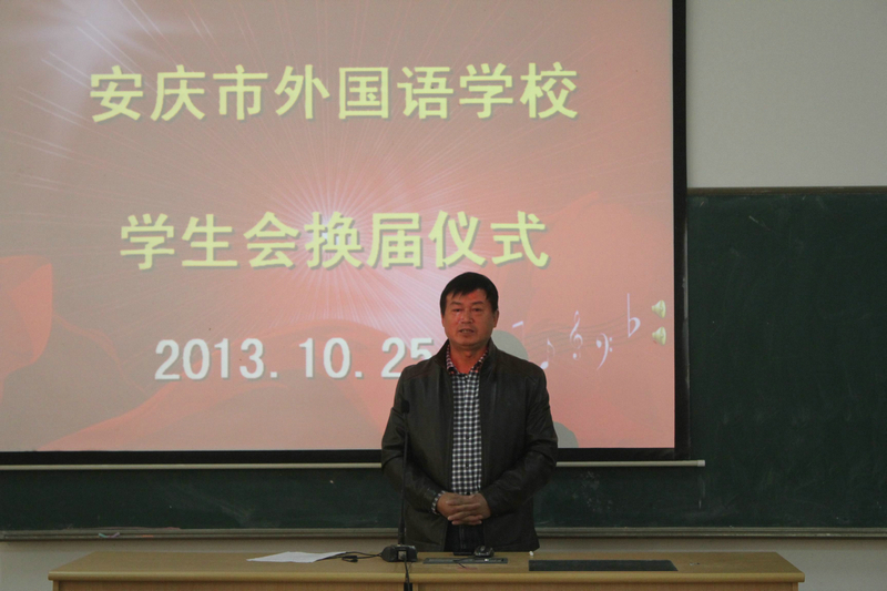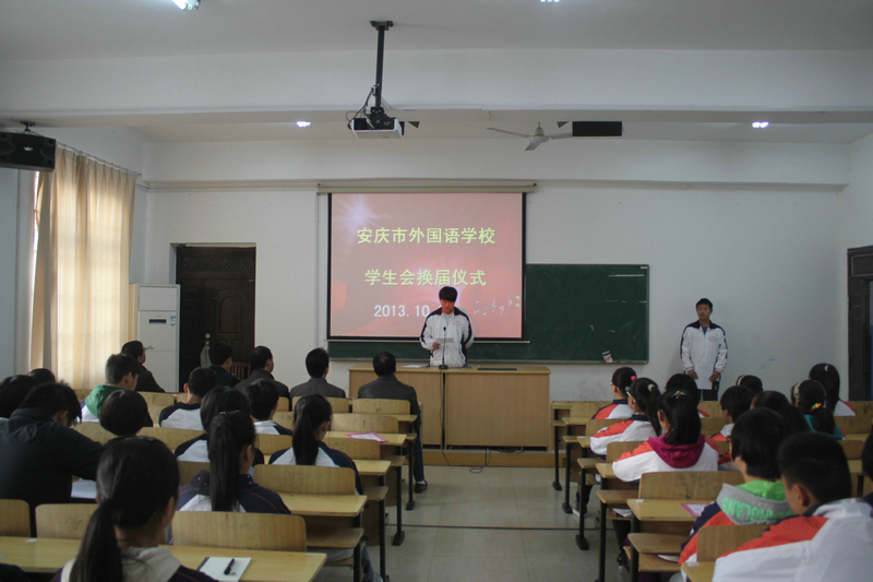 2013年10月25日上午,安慶市外國(guó)語(yǔ)學(xué)校團(tuán)委在中學(xué)部合班教室召開了第八屆學(xué)生會(huì)換屆大會(huì)。出席此次會(huì)議的領(lǐng)導(dǎo)有程金柳校長(zhǎng)、劉兵校長(zhǎng)助理,初中部王生祥主任、高中部徐海宏主任,團(tuán)委金根生老師。