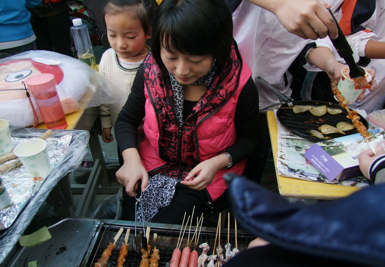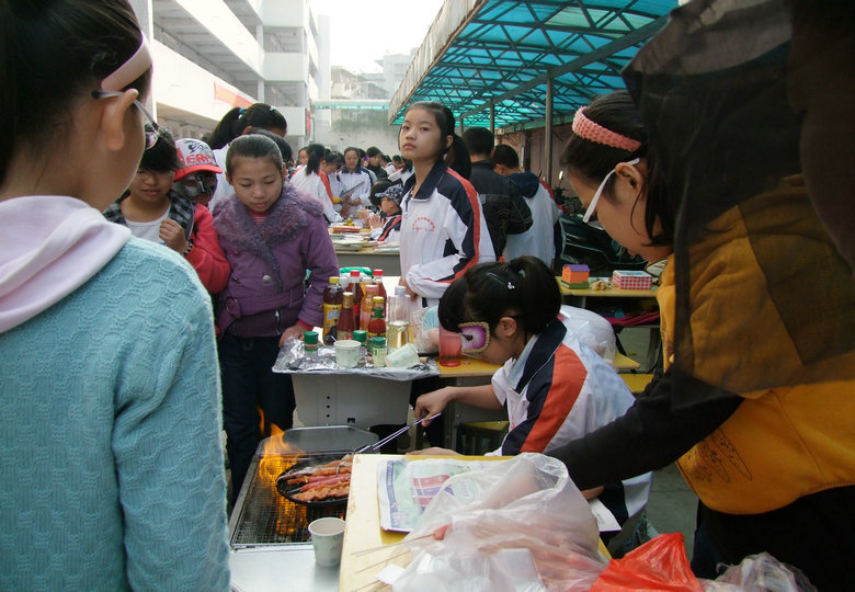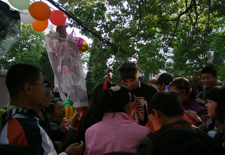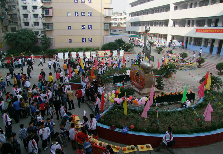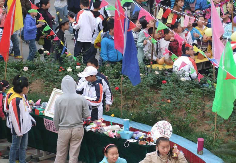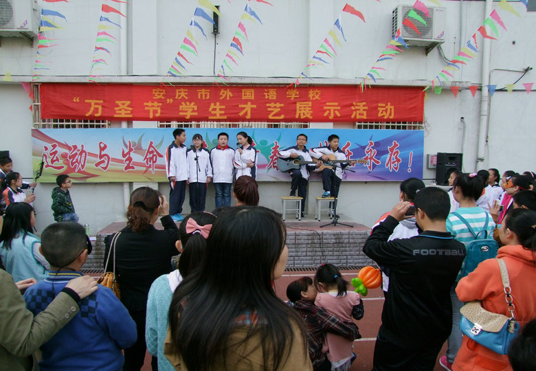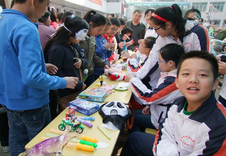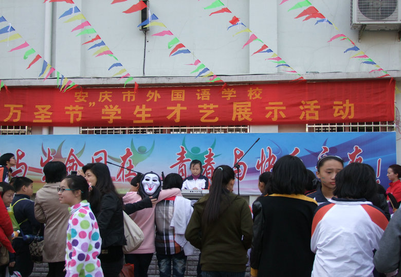 在才藝展示區(qū)內(nèi),學生們嘹亮的歌聲和精彩的舞蹈贏得了觀看者的陣陣掌聲,更有許多小學生與其家長主動登臺演藝助興,整個校園充滿了快活的氣氛;在游戲活動區(qū)內(nèi),各種精彩的游戲都在不斷地進行著,緊張、快樂……寫在每一個人的臉上;各班展區(qū)還專門安排了同學向小學生們介紹萬圣節(jié)的由來,組織猜謎活動;在英語一條街上,學生們正用英語積極地推銷著自己的商品,流利的英語不僅道出了他們心中的自豪,更展現(xiàn)了安外特色的英語教學。