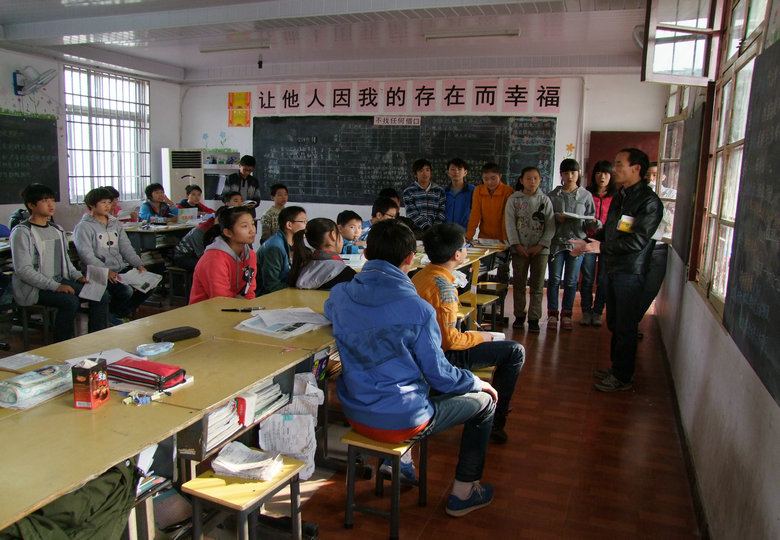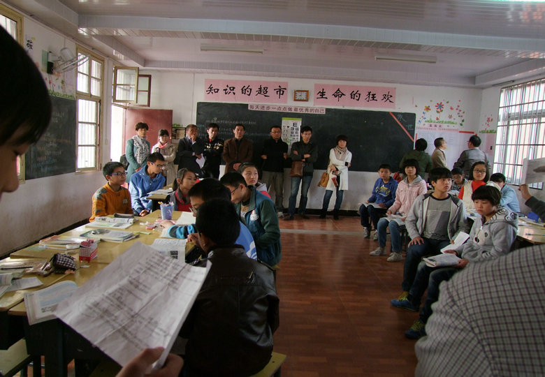 衛(wèi)民中學(xué)占地不廣,卻活力四射。放眼教室,窗明桌凈。全班六組,每組六桌,三三對(duì)立。前墻后壁,都是勵(lì)志警言;四面六板,均為展示樂(lè)園。課課師導(dǎo)生學(xué),堂堂力求高效,課堂四個(gè)環(huán)節(jié):自學(xué),討論互助,展示和質(zhì)疑。每位老師都愿放手課堂,敢做學(xué)生成長(zhǎng)的引路人;個(gè)個(gè)學(xué)生都能主動(dòng)參與,樂(lè)做學(xué)習(xí)的主人。