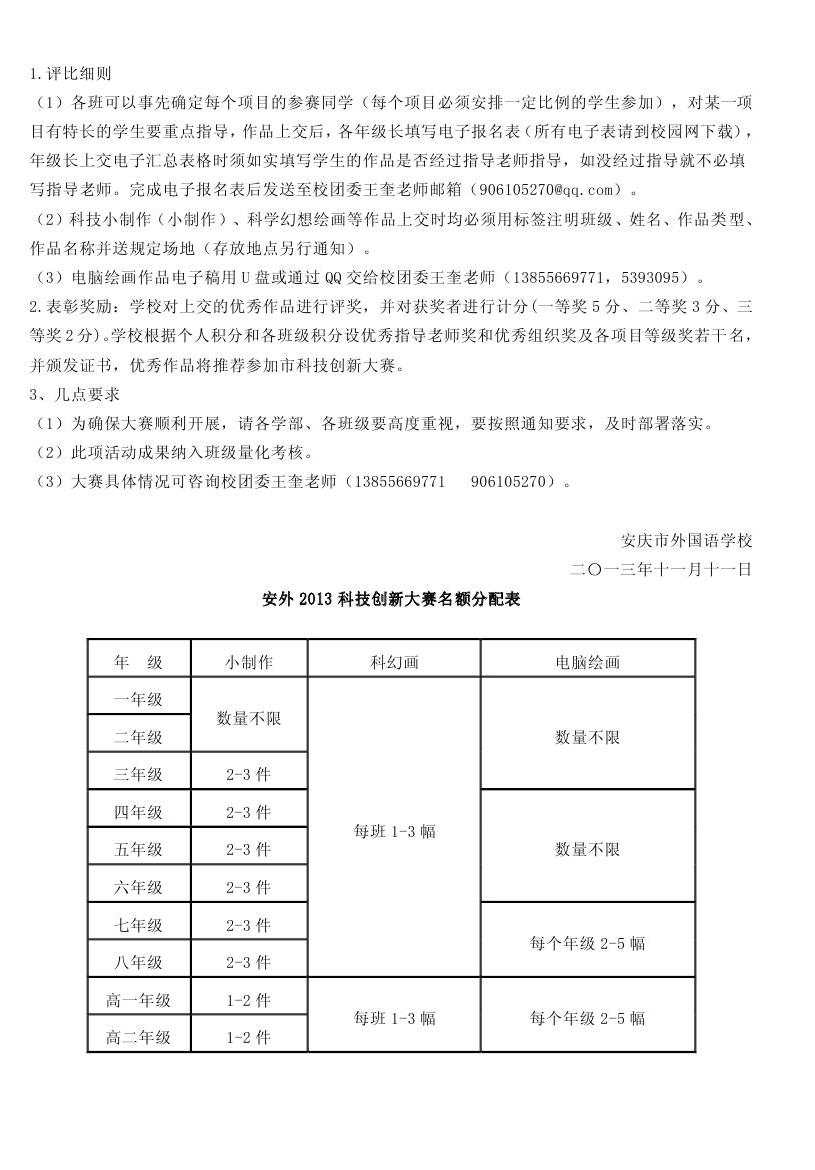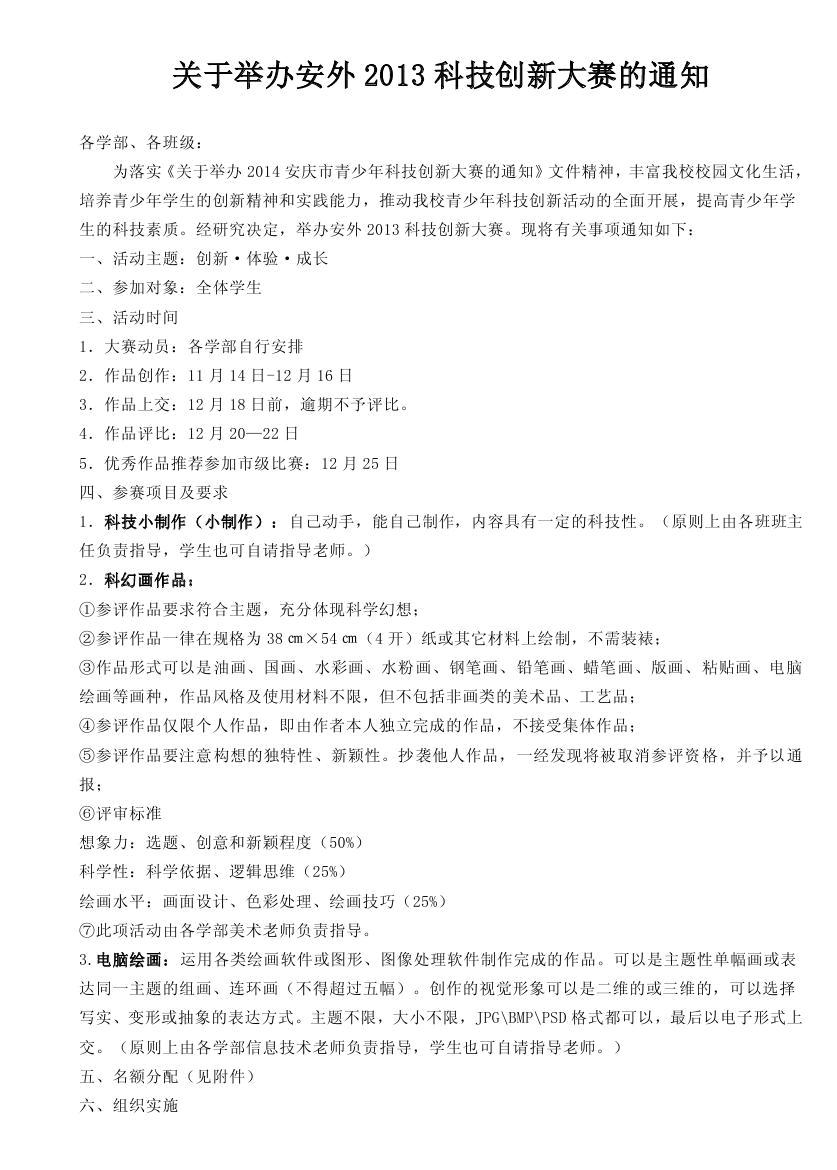 關(guān)于舉辦安外2013科技創(chuàng)新大賽的通知
