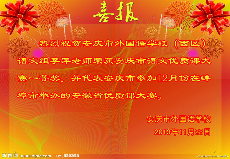 熱烈祝賀安外(西區(qū))李萍老師代表市參加省初中語文優(yōu)質(zhì)課大賽