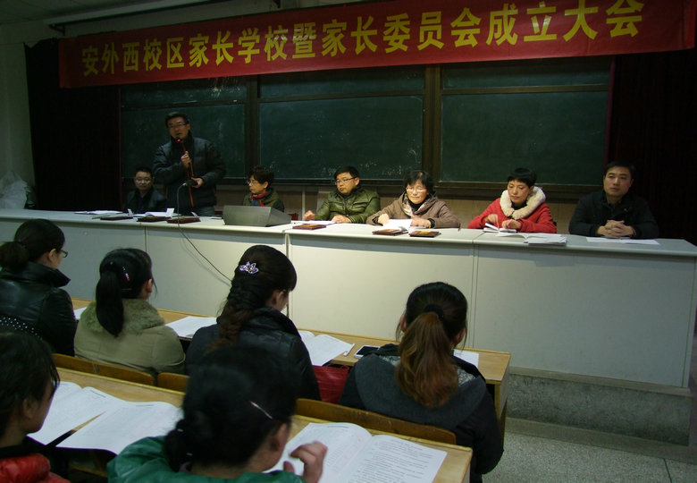為了促進家校合作,為家校之間的溝通、交流提供一個良好平臺,安慶外國語學(xué)校(西區(qū))于2013年12月6日在一樓報告廳成立了家長學(xué)校暨家長委員會成立大會,出席本次會議的有校長孫英,常務(wù)副校長陳一平及各部門主任和家長代表。會議由德育部主任陳安琪主持。