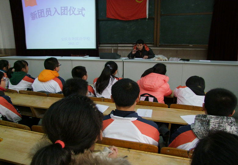 2013年12月12日中午一點(diǎn)半,安慶外國語學(xué)校(西區(qū))新團(tuán)員入團(tuán)儀式在報(bào)告廳隆重舉行。