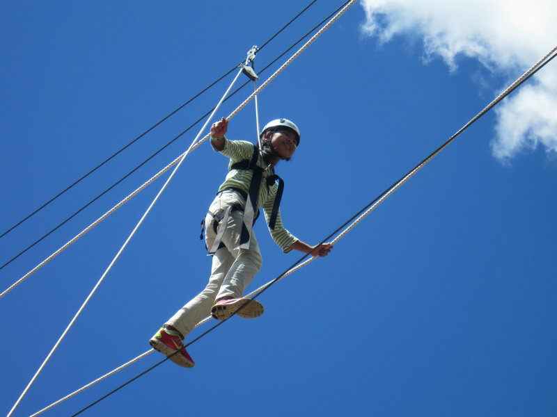 早上進(jìn)行了低繩活動,下午是柏麗湖沙灘還有劃船。
