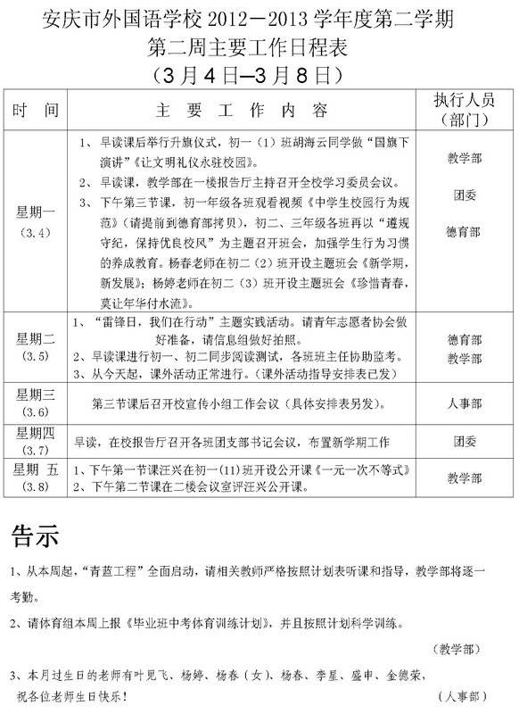 第二周主要工作日程表