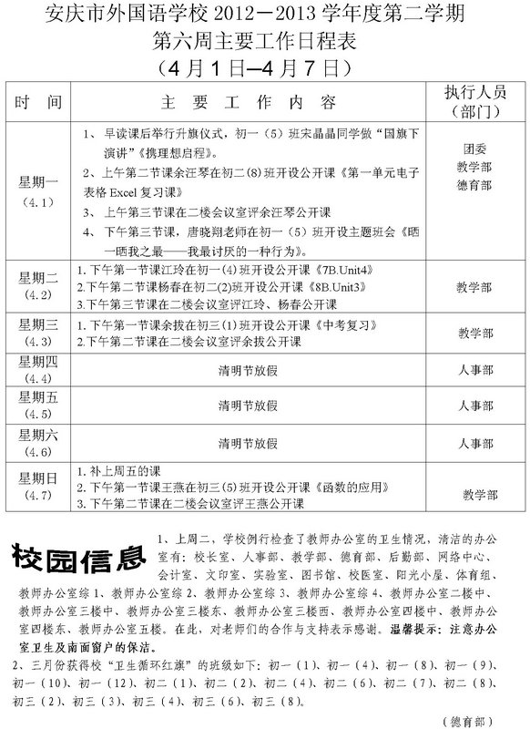 第六周主要工作日程表