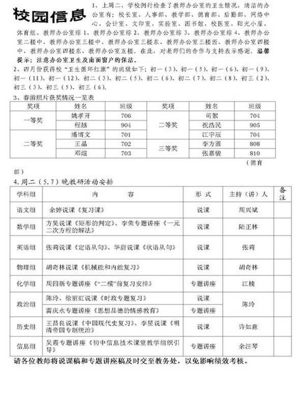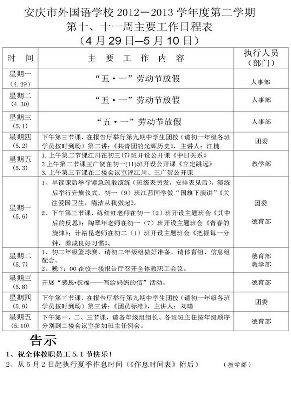 第十、十一周主要工作日程表