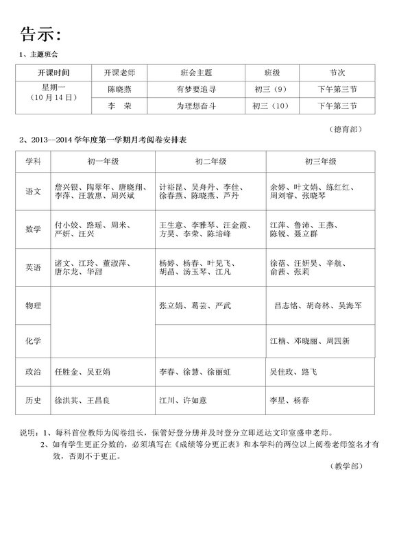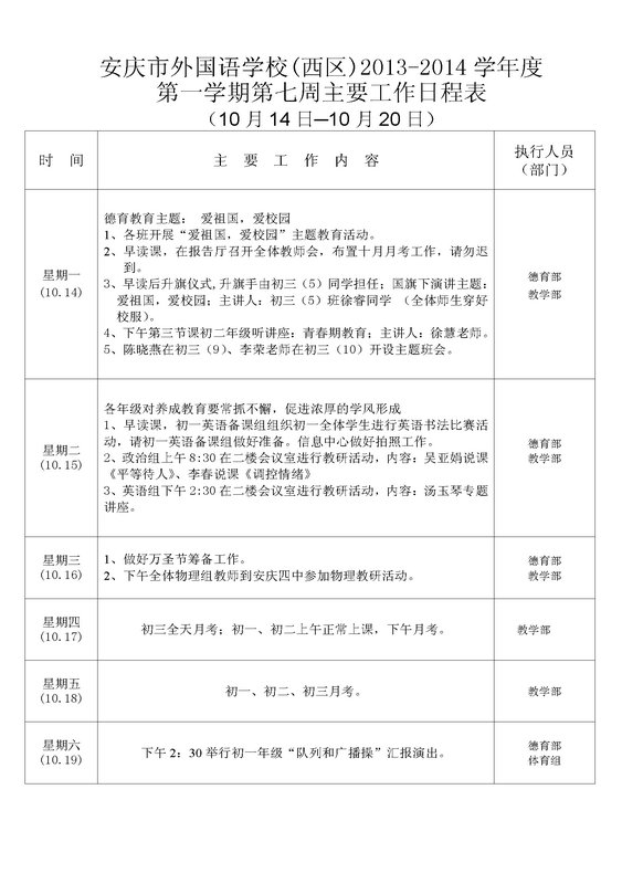 第七周主要工作日程表
