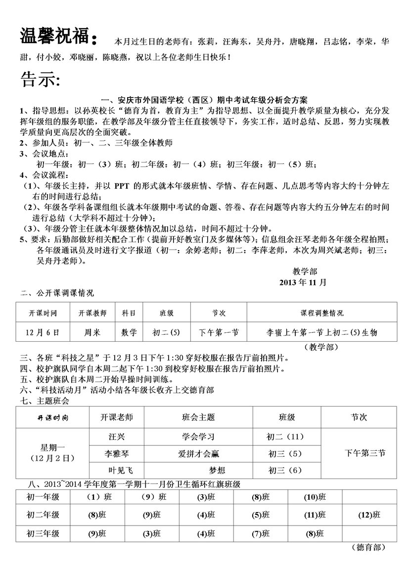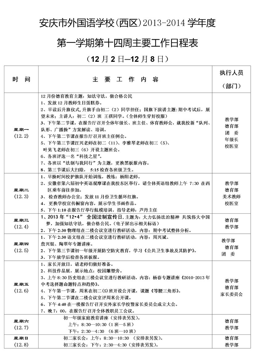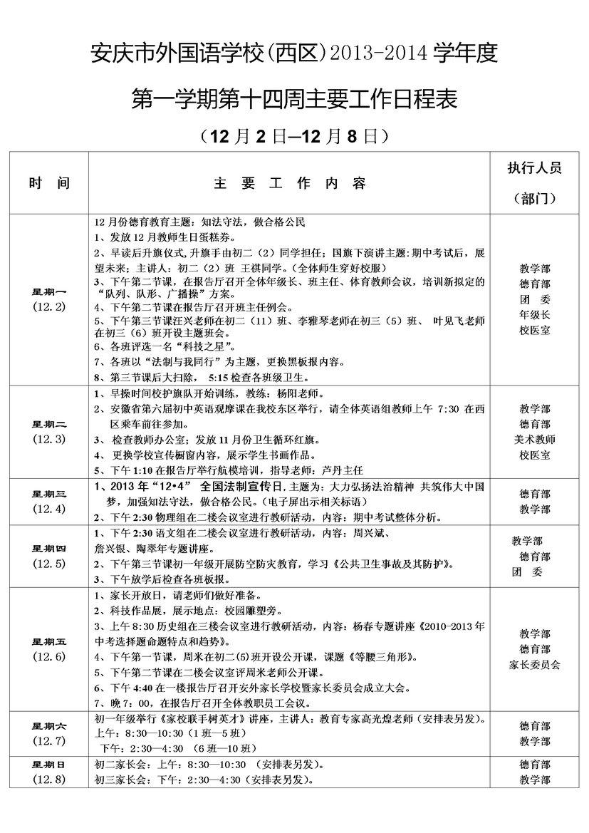 第十四周主要工作日程表