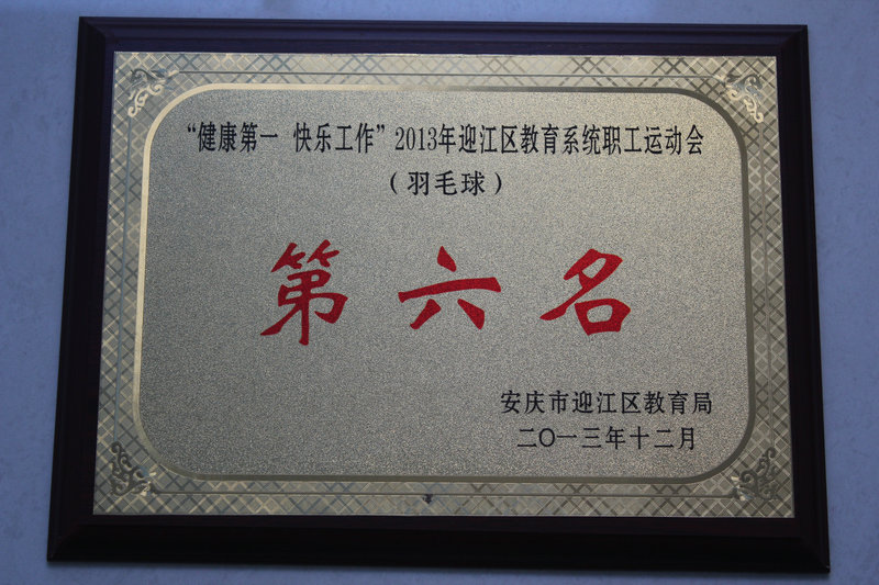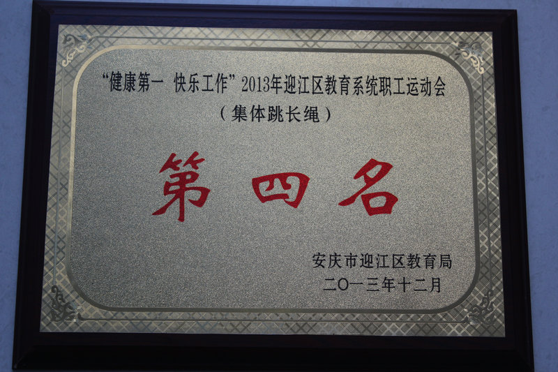 2013年12月21、22日,迎江區(qū)教育局在碧桂園學(xué)校舉辦了為期兩天的“健康第一,快樂工作”教工運(yùn)動(dòng)會(huì)。我校代表隊(duì)全體運(yùn)動(dòng)員發(fā)揚(yáng)頑強(qiáng)拼搏,團(tuán)結(jié)協(xié)作的精神,在運(yùn)動(dòng)場(chǎng)上書寫華麗篇章。由嚴(yán)紅萍副校長(zhǎng)等12名隊(duì)員組成的跳繩隊(duì)榮獲第四名;由勞果林主任和肖俊老師組成的羽毛球男女混雙力克勁敵,榮獲第六名。在19支代表隊(duì)的激烈爭(zhēng)奪賽中,我校代表隊(duì)團(tuán)體總分并列第八名。