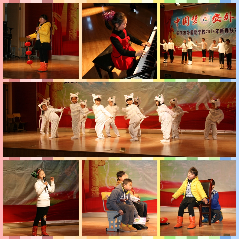 為迎接新年的到來(lái),2013年12月28日上午9:30,安慶外國(guó)語(yǔ)學(xué)校小學(xué)部2014年元旦演出,暨中國(guó)夢(mèng)•安外情文藝匯演在校報(bào)告廳隆重舉行,黃文莉校長(zhǎng)、程金柳副校長(zhǎng)、張燕斌副校長(zhǎng)等校領(lǐng)導(dǎo)親臨現(xiàn)場(chǎng)并觀看演出。