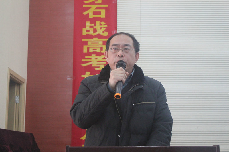 張燕斌副校長致辭。他首先代表學(xué)校向在高三畢業(yè)班辛勤耕耘、無私奉獻的老師們表示衷心的感謝和誠摯的敬意!向勤奮學(xué)習(xí)、頑強拼搏、屢創(chuàng)佳績的同學(xué)們致以親切的問候!同時在這個特別的日子里,張校長鼓勵高三的學(xué)子們要勇于面對高考嚴(yán)峻的考驗,并要始終不渝的堅持努力。期待高三的學(xué)子們能夠把最美的風(fēng)景帶到山巔,體驗登天的感覺;能夠把最燦爛的笑容留到六月,創(chuàng)造六月的輝煌!張校長的話語重心長,飽含了對莘莘學(xué)子的深情,感染著現(xiàn)場每一位高三的學(xué)生,各班級紛紛打出本班口號以回應(yīng)校長的諄諄教誨。