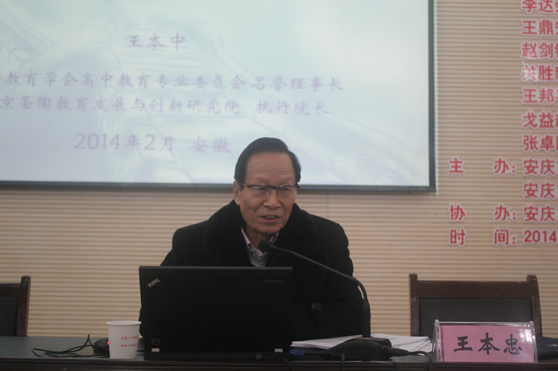 上午8:30,舉行開(kāi)幕式,會(huì)議由合肥鴻雁教育有限公司李勇康主持。安慶市教育局教工委書記、副局長(zhǎng)陳云作了重要講話。我校黃文莉校長(zhǎng)向全體參會(huì)人員致歡迎詞并簡(jiǎn)要介紹了我校的基本情況。最后,國(guó)家教育咨詢委員會(huì)委員,國(guó)家考試指導(dǎo)委員會(huì)委員,國(guó)家基礎(chǔ)教育課程教材專家工作委員會(huì)委員王本中教授主講《普通高中教育發(fā)展的新思路與高考改革的走向》。