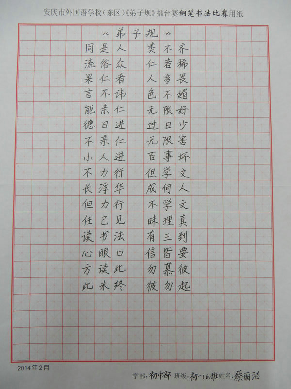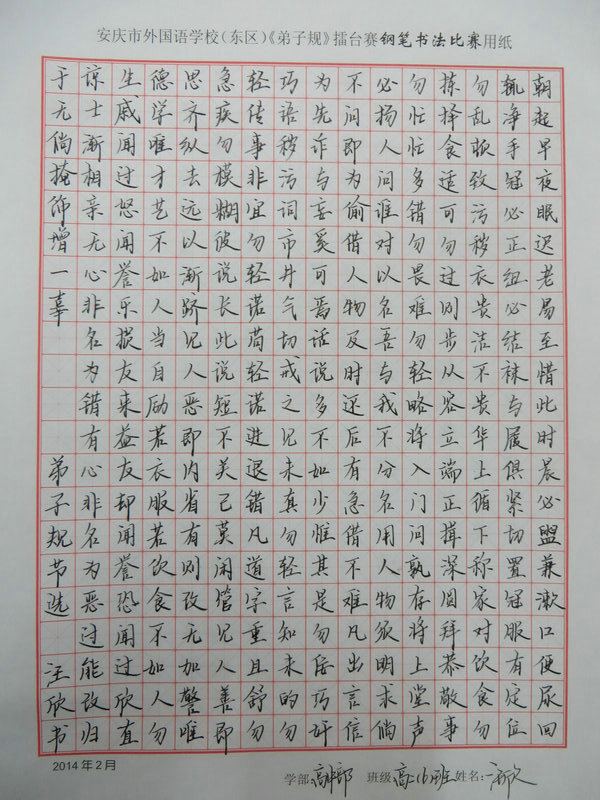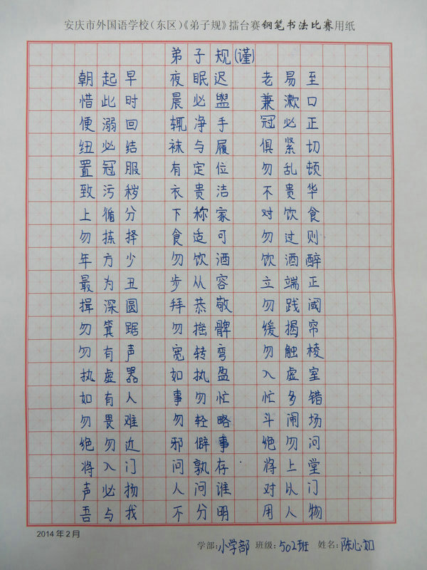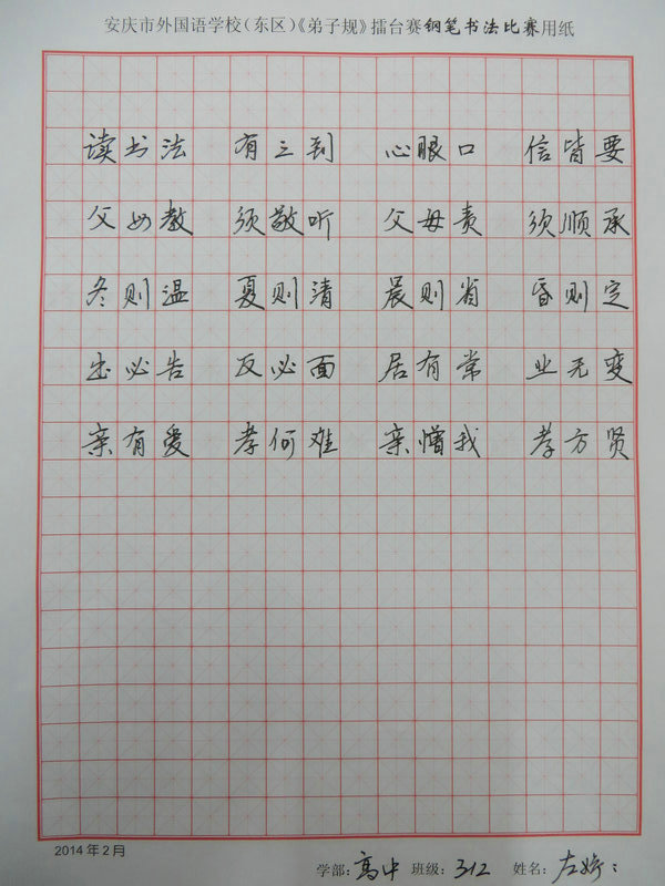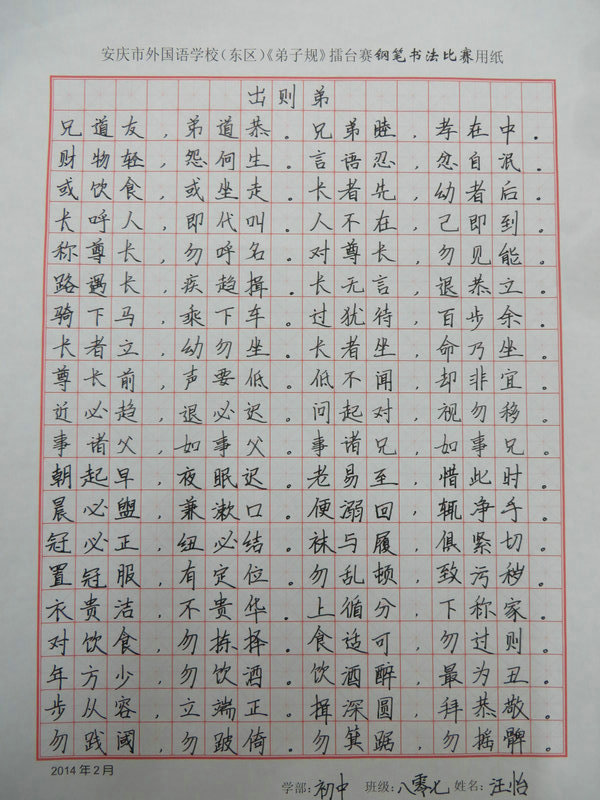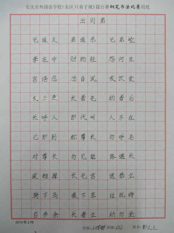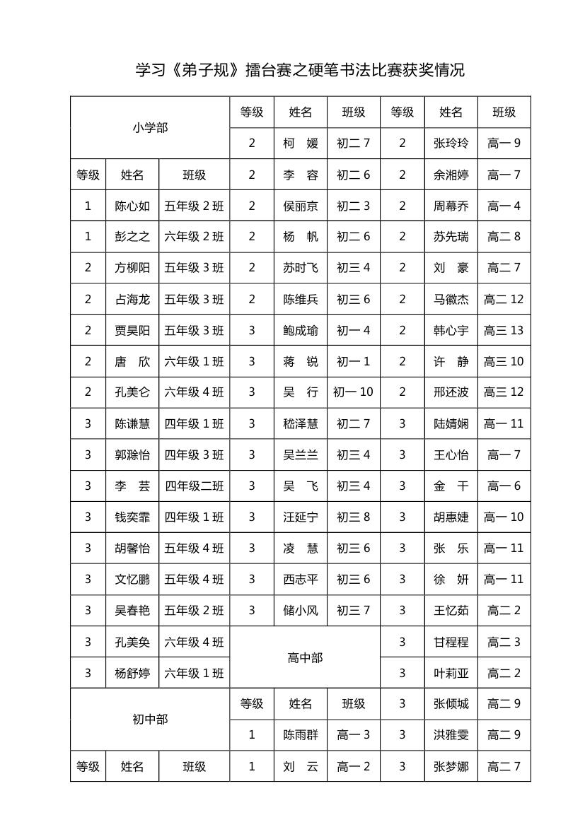 學習《弟子規(guī)》擂臺賽之硬筆書法比賽獲獎情況