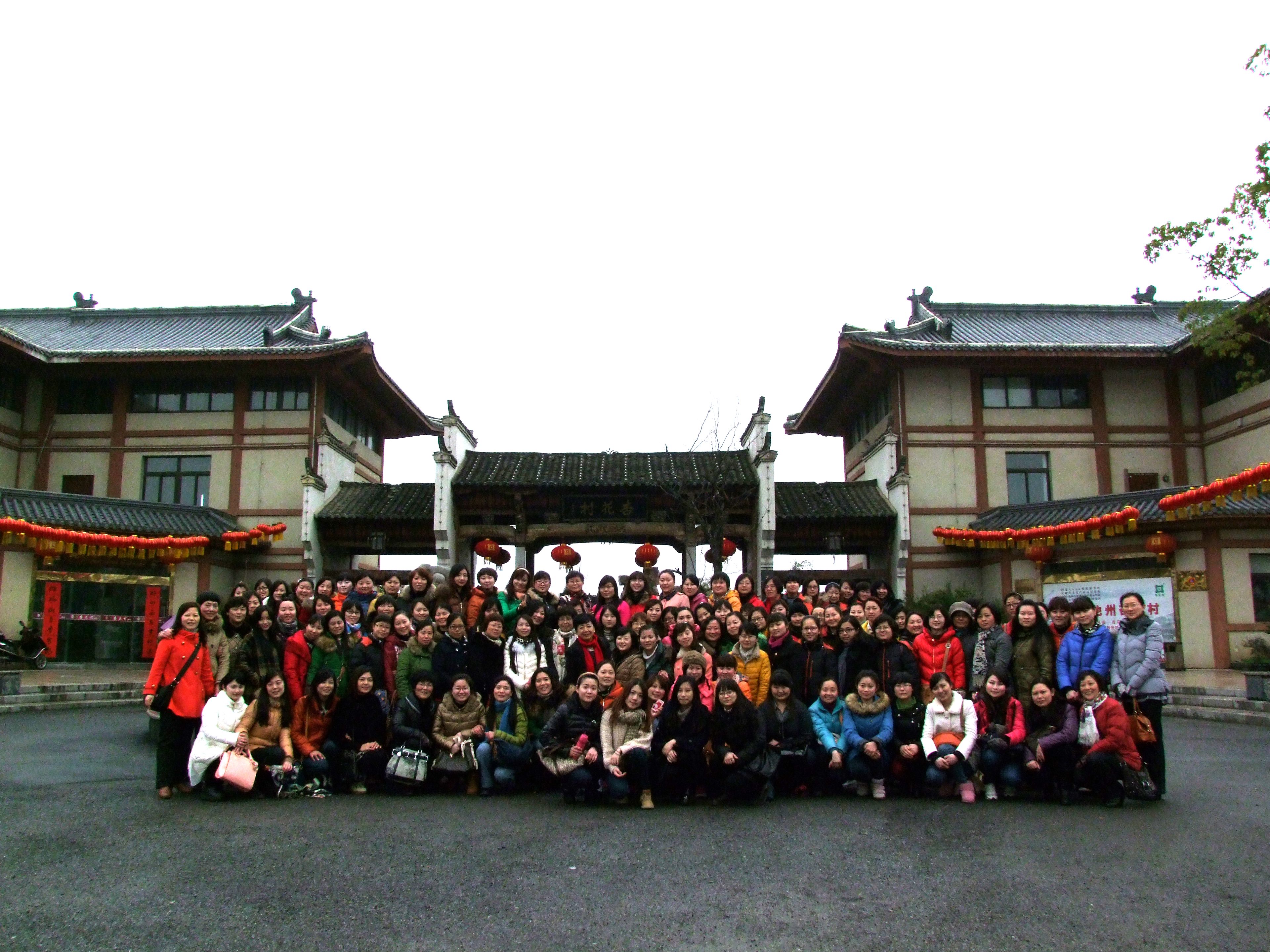 景區(qū)雖然不大但很典雅,園內(nèi)廣植花草、杏樹成林、溪流縱橫,滿眼的翠綠欲滴,讓老師們感到心曠神怡?;帐降娘w檐翹角,絳紅的實木仿唐建筑錯落有致,還有古戲臺黃梅戲的表演精彩紛呈,我們在幽靜村落里憑吊懷古、在花語酒香中休閑娛樂,盡情領(lǐng)略著春天的無限生機。老師們沉浸在風(fēng)景如畫的美景之中,飽覽著園中各處自然美麗的風(fēng)光。游玩結(jié)束集合時,學(xué)校組織了全體女教職員工們合影紀(jì)念,一張張綻放的笑臉就像一朵朵迎春花,期盼著我們的未來更加春和景明。杏花村優(yōu)美的自然風(fēng)光和濃郁的文化氛圍,讓女教職工們深深陶醉,流連忘返。