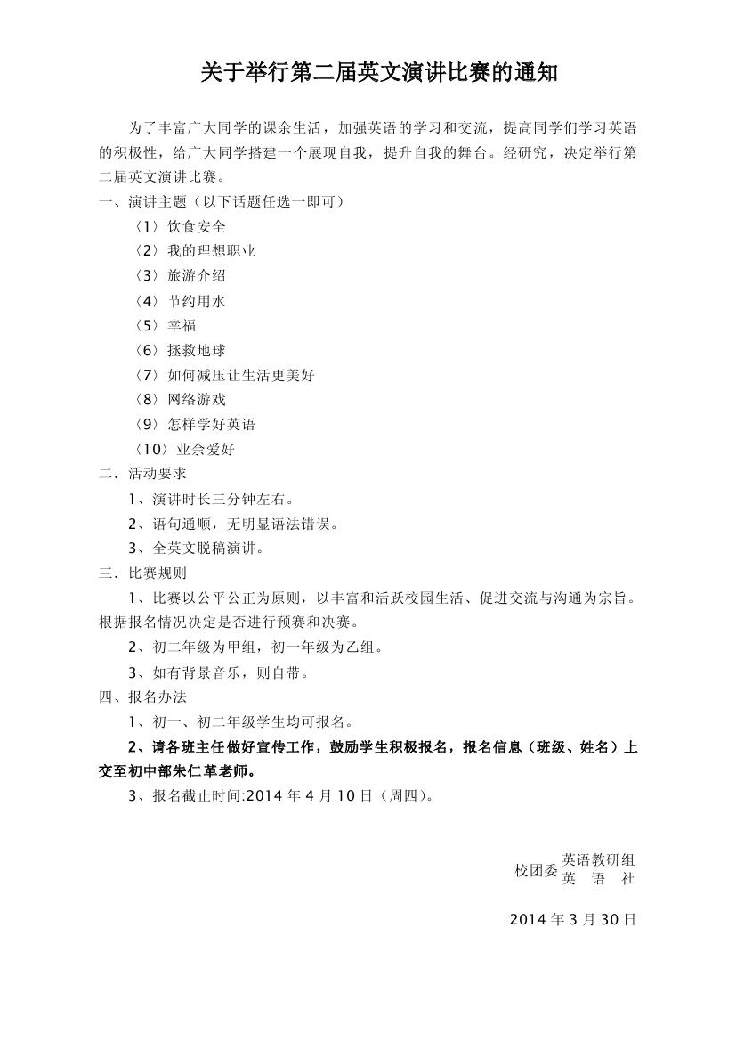關(guān)于舉行安慶市外國語學(xué)校第二屆英文演講比賽的通知