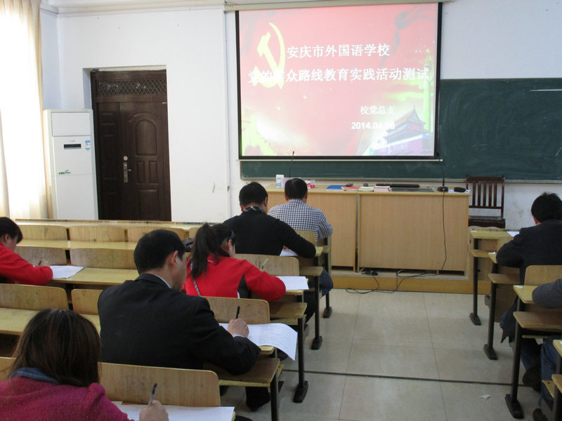 為了鞏固黨的群眾路線教育實踐活動學(xué)習(xí)教育環(huán)節(jié)的學(xué)習(xí)成果, 2014年4月8日中午,外國語學(xué)校東區(qū)對全體黨員教師進(jìn)行了黨的群眾路線教育實踐活動知識測試。測試采用安慶市市直教育系統(tǒng)黨的群眾路線教育實踐活動測試卷,內(nèi)容包括:黨的群眾路線相關(guān)知識、十八大報告、新黨章、習(xí)近平總書記關(guān)于開展群眾路線教育的重要講話等內(nèi)容,以填空題、選擇題、判斷題、簡答題和論述題為主,全面細(xì)致地檢驗了黨員教師學(xué)習(xí)成效,加深了他們對群眾路線的理解。