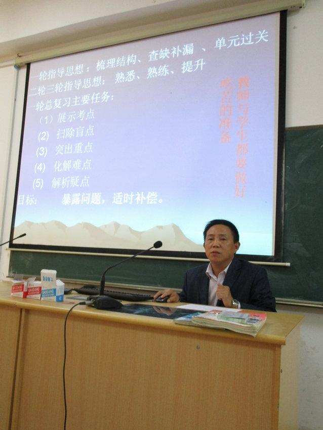 會(huì)議第二項(xiàng),凌謙主任做中考復(fù)習(xí)專題講座。他以數(shù)學(xué)學(xué)科為例,參照一節(jié)復(fù)習(xí)課的案例進(jìn)行了詳細(xì)的剖析,認(rèn)為一節(jié)好的復(fù)習(xí)課,應(yīng)分成考綱要求、考點(diǎn)剖析、中考鏈接、達(dá)標(biāo)測(cè)試這四個(gè)環(huán)節(jié)來(lái)完成教學(xué),并結(jié)合案例指出中考三輪復(fù)習(xí)的指導(dǎo)思想、任務(wù)和方法。最后凌主任提出了對(duì)初三備課組工作以及班主任工作的幾點(diǎn)意見。整場(chǎng)講座注重實(shí)效,由點(diǎn)推面為初三年級(jí)組中考三輪復(fù)習(xí)工作的展開明確了思路與方向,同時(shí)也為非畢業(yè)班的期中復(fù)習(xí)工作做了有益的指導(dǎo)。