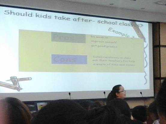 第一個部分是由兩位教師針對中考復習展開的專項研討課。首先,由來自獨秀中學的章河生老師針對語法“非謂語動詞”進行授課。本節(jié)課復習系統(tǒng),重難點突出,大量的練習夯實了學生的語法知識。緊接著由四中本校的王琳老師講授了評論性作文的基本寫法。本節(jié)課依據(jù)《英語課程標準》的理念,以幫助學生形成有效的寫作策略為目標,精妙設計了各個環(huán)節(jié)并成功展開。整節(jié)課以學生為主體,教師引導學生通過觀察、探討、合作等積極主動的學習方式,發(fā)現(xiàn)寫作要領并運用到個人的寫作中去,實用性很強。