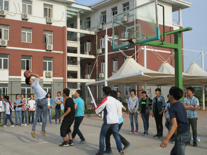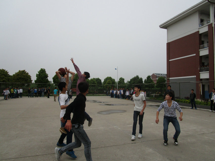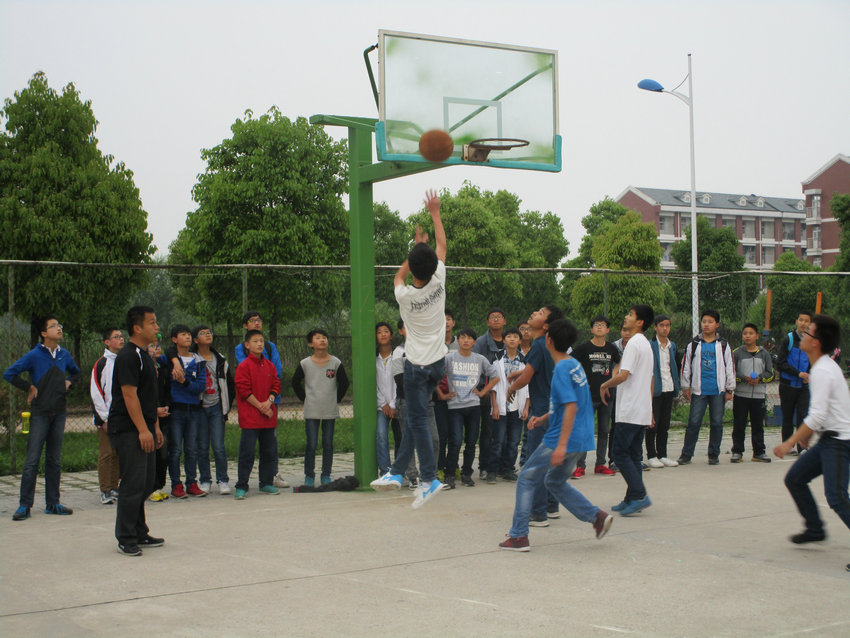 為培養(yǎng)學(xué)生的集體榮譽(yù)感,豐富學(xué)生的課余文化生活,增進(jìn)班級(jí)之間的友誼,提高學(xué)生的籃球競技水平。初二年級(jí)從4月26日開始,進(jìn)行了一場別開生面的迎“五一”籃球賽-----男生三對(duì)三對(duì)抗賽。
