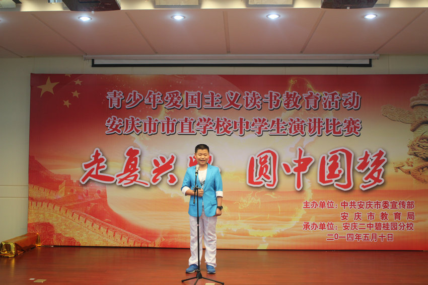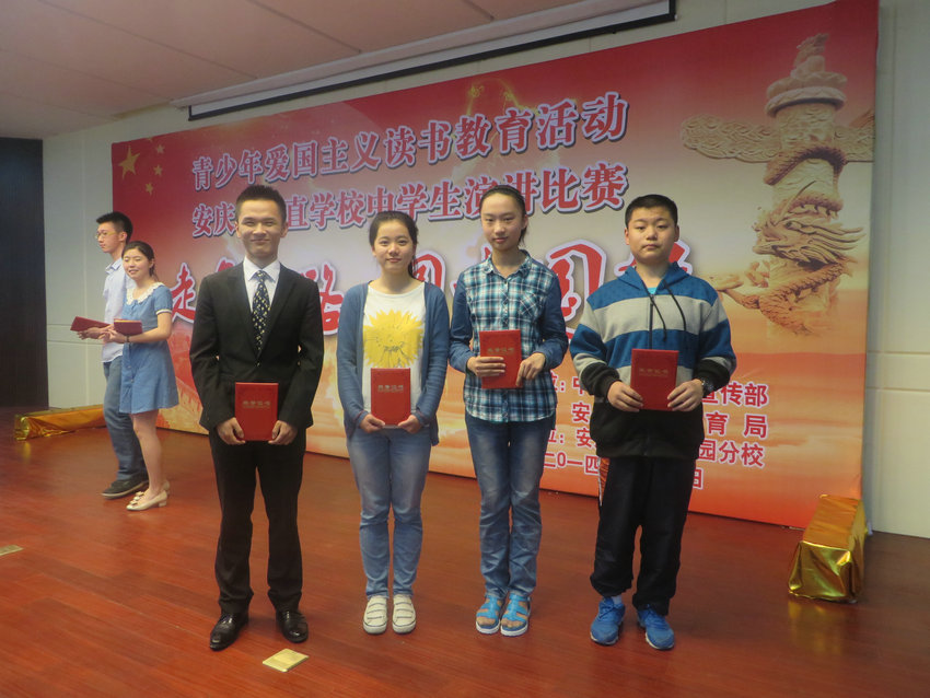 5月10日上午,安慶市直中學(xué)生愛(ài)國(guó)主義讀書演講比賽在安慶二中碧桂園分校隆重舉行,來(lái)自19所市直中學(xué)的41名選手參加了激烈的角逐。我校西區(qū)派出的兩位學(xué)生程為豪和吳卓然同學(xué)分別獲得二、三等獎(jiǎng)。在此,向以上兩位獲獎(jiǎng)同學(xué)表示熱烈祝賀,也對(duì)他們?yōu)閷W(xué)校爭(zhēng)得榮譽(yù)表示感謝!同時(shí),也對(duì)兩位同學(xué)的指導(dǎo)老師表示祝賀和感謝!