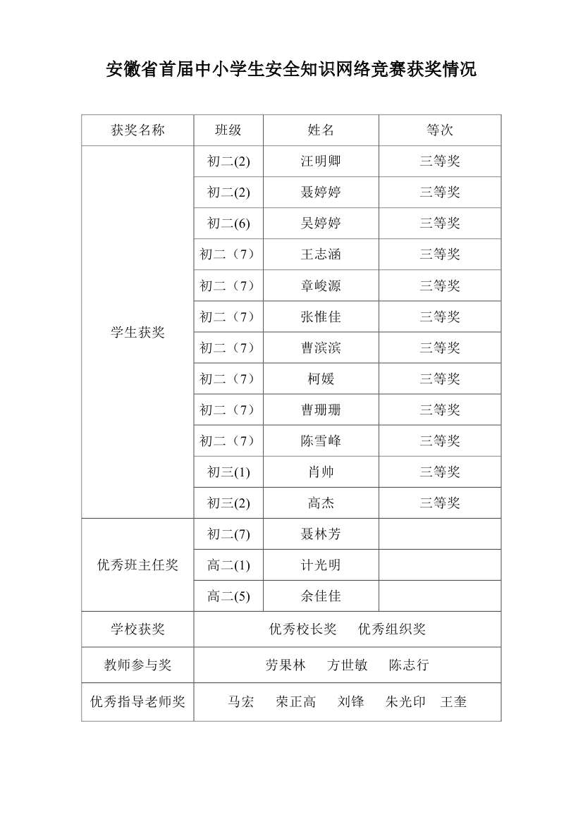 安徽省首屆中小學生安全知識網(wǎng)絡(luò)競賽獲獎情況