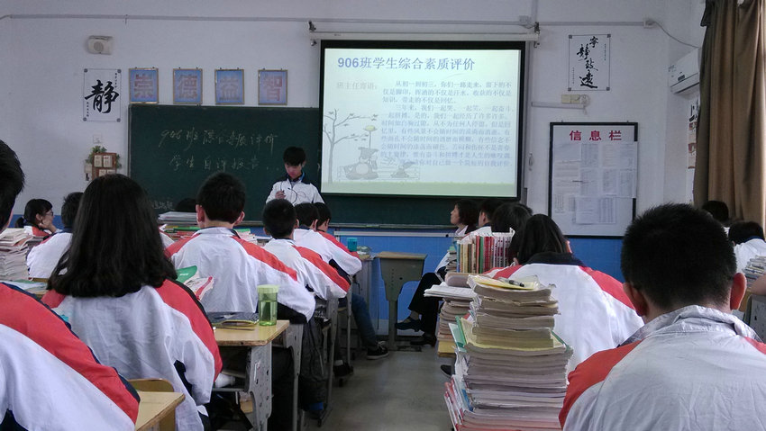 下午第三節(jié)班會課,各班每位學(xué)生依據(jù)自己平時(shí)表現(xiàn)和《綜合素質(zhì)報(bào)告冊》的評價(jià),結(jié)合個(gè)人成長記錄袋里信用記錄和班級的量化考核結(jié)果,限定每人一分鐘,依次上臺演講、進(jìn)行自評。本次綜合素質(zhì)評價(jià)分為五個(gè)維度:公民道德素質(zhì)、學(xué)習(xí)態(tài)度與能力、實(shí)踐與創(chuàng)新、運(yùn)動(dòng)與健康、審美與表現(xiàn)等。每一項(xiàng)評價(jià)結(jié)果呈現(xiàn)為A、B、C、D四個(gè)等級。對于每項(xiàng)等級,又分為學(xué)生互評、教師評價(jià)、學(xué)校評價(jià)及綜合評價(jià)。為使評價(jià)更客觀和公正,班級評價(jià)小組特邀請各班授課教師及八年級部分學(xué)生家長全程參與,現(xiàn)場觀摩、監(jiān)督、指導(dǎo)。評價(jià)結(jié)果將擇日告知學(xué)生本人和家長,對評為5A等第的學(xué)生的名單將予以公示。